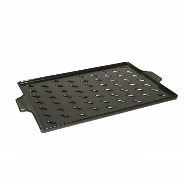 Get the benefits of cooking with high heat without the weight or maintenance of cast iron! The Flame-Friendly® series of grilling accessories conduct high, evenly distributed heat to cook your food but are lightweight and easy to clean. Eco-friendly, fireproof and thermal shock resistant up to 700˚F., they are a perfect choice for both the oven and the grill. The attractive non-stick glazed finish is also scratch resistant, so your grill grid will look good through many cookouts. This grid makes it easy to grill and smoke food items without losing them through the grill grate.