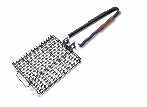The Ultimate Grilling Basket™ handles detach to allow the griller to close the grill lid during cooking. Keeping the lid closed speeds cooking time, increases food contact with smoke and reduces flare-ups. Basket includes a 14″ long removable handle