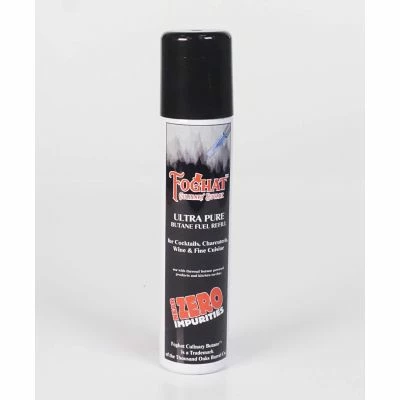 60ml can of Foghat Culinary Butane for use with the Foghat Culinary Torch or any kitchen torch. This ULTRA PURE butane is specially formulated and distilled for use with fine food and drinks. Foghat Culinary Butane has NEAR ZERO IMPURITIES making this the optimum culinary kitchen gas for cooking, cocktails, charcuterie, wine and all fine cuisine. Included is universal adapters for use on all brands of kitchen torches and lighters requiring butane.