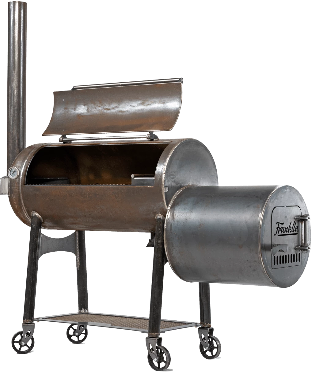 Every Franklin Barbecue Pit is made by hand in the good ol’ USofA. As a result, each of our handcrafted pits has its own quirks and characteristics making it truly one of a kind! These differences in cosmetic attributes do not affect the performance of the pit (or the tasty meals it will surely produce). Cook chamber and firebox door gaps may move around a bit from manufacturing, welding and cooking. During our quality control process, any element that does not fall within our range of tolerance is addressed before final approval. The skill of our welders combined with the natural elements of the steel work together to create YOUR pit, there won’t be another one like it!