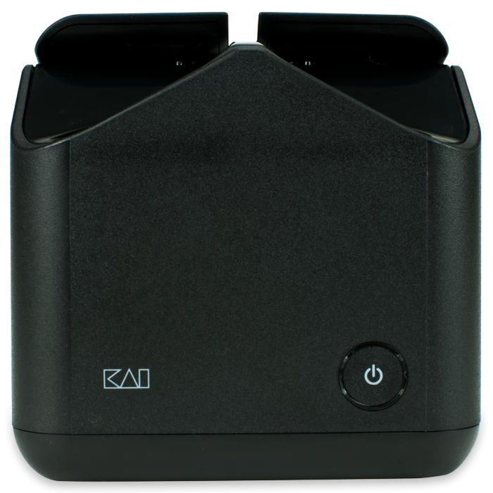 It takes just minutes to return your kitchen cutlery to razor-sharp performance. The Kai Electric Sharpener automatically sets the correct 16-degree sharpening angle for any Kai or Shun double-beveled knife. Easily sharpen stainless steel, carbon steel, clad steel, or Composite Blade knives.* Using special sharpening and finishing stones, the Kai Electric Sharpener makes it simple to always have the sharp edge that makes cutting quick and food preparation a pleasure.