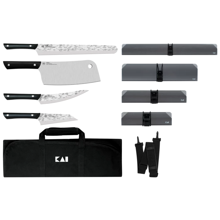 The PRO BBQ Set features four key tools you will need for grilled meats of all types, from prime rib to poultry. The cleaver handles larger cuts of bone-in meat. The PRO Asian Multi-Prep breaks down poultry quickly, then doubles as a general prep knife for grilled vegetables and sauce ingredients. The boning/fillet knife gets in close to the bone to make your task easy. For perfect, mouth-watering slices, the PRO Slicing/Brisket Knife is there for you. The PRO BBQ Set also includes blade guards for each knife and a handsome knife roll that makes it easy to take your tools with you wherever your BBQ adventures take you.