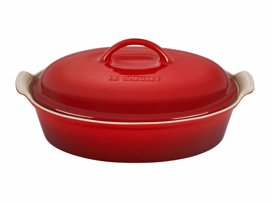Le Creuset stoneware casseroles offer superior, highly functional performance both in the oven and at the table. These durable stoneware dishes include tight-fitting lids and easy-to-grip grooved side handles, and are designed for a multitude of kitchen tasks, whether baking desserts, oven-roasting meats, broiling fish or simply marinating before cooking.