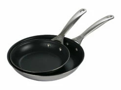 Set includes: 8″ nonstick stainless steel fry pan and 10″ nonstick stainless steel fry pan.