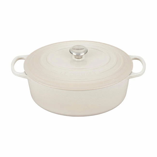 The iconic Le Creuset Dutch oven is indispensable in the kitchens of home cooks and professional chefs alike. Expertly crafted from enameled cast iron, the everyday versatility of the Dutch oven makes it ideal for everything from slow-cooking and braising to roasting, baking, frying and more. The oval shape is particularly suited for larger cuts of meat, whole chickens and for baking oval-shaped loaves of bread.