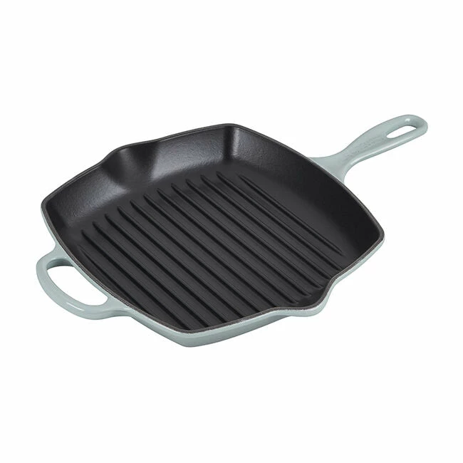 The Square Skillet Grill’s interior is coated with Le Creuset’s protective satin black finish to prevent damage and wear. Over time, this slightly abrasive interior develops a natural patina that is ideal for searing and frying.