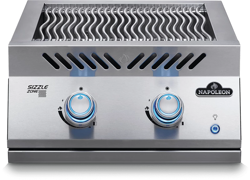 The Infrared SIZZLE ZONE™ can be used to produce the perfect sear on meat or used to create sides and sauces while the main grill is in use. This 18-inch, dual burner, drop-in Infrared SIZZLE ZONE™ burner provides loads of space to sear succulent steaks to restaurant-quality perfection. Made from the same quality of marine-grade stainless steel as the 700 Series built-in grills, this drop-in side burner matches your custom outdoor kitchen. These burners provide stylish longevity and were built with ease of install in mind. Virtually maintenance-free 7.5-mm cooking grids deliver the iconic WAVE™ sear marks that tell your meal was cooked on a Napoleon. Ignite the burners one-handed using the JETFIRE™ instant ignition system. The ergonomic NIGHTLIGHT™ control knobs which provide ambiance and safety, glowing a glorious blue and changing to red when burners are in use.