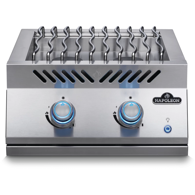 Create sides and sauces while the main grill is in use with this 18-inch, drop-in, Dual Range Burner that provides loads of extra space. Instantly ignite these burners single-handed with the JETFIRE™ Ignition System. The large, ergonomic NIGHTLIGHT™ Control Knobs provide ambiance and safety, glowing a glorious blue that changes to red when the burners are in use. Made from the same quality of marine-grade stainless steel as the 700 Series built-in grills, this drop-in side burner matches your custom outdoor kitchen. These burners provide stylish longevity and were built for ease of install.