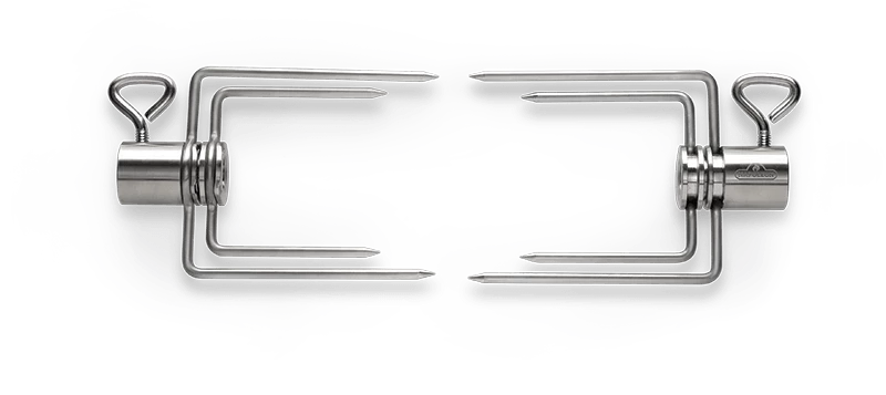 Using a rotisserie to create meals on the barbecue is easy and delicious, but sometimes you need a little extra help. This set of two Rotisserie Forks is happy to help. Featuring four prongs for easy gripping of food without damage and a collapsable design for easy storage, you won’t know what you did before you had these extra hands. The food0-grade stainless steel is dishwasher safe and they are universal, fitting both square and hexagonal spit rods easily.