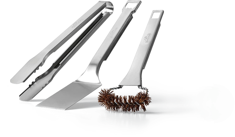 Just because you’re grilling on the go with your Napoleon TravelQ⢠doesn’t mean that you can’t use nice tools. This Three Piece TravelQ⢠Tool Set features premium quality stainless steel and a compact size specifically designed for use on the TravelQ⢠Portable Gas Grill. This set includes a spatula, tongs, and a grill brush with natural fiber bristles to safely clean the cast-iron cooking grids. The integrated tool hangers on the spatula and grill brush are perfect for the side shelves on the TravelQ⢠with scissor cart and have a built-in bottle opener so that the party doesn’t stop.