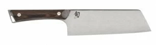 The Shun 7-in. Asian Utility is part of the Shun Kanso series. Kanso is a design principle based on Zen philosophy. It means “simplicity,” but simplicity that is achieved by eliminating the non-essential. In Kanso, we took away anything that doesn’t matter and kept everything that does: high-performance steel, razor-sharp edge, perfect balance, and precision cutting control. The steel is Japanese AUS10A—highly refined, high-carbon, vanadium stainless steel that takes a razor-sharp edge and holds it longer. Kanso’s Heritage finish hides scratches and gives Kanso a rustic look that just improves with age. The handle is made of a wood called tagayasan or wenge, which is sometimes known in Japan as “iron sword wood.” The handle contouring enables an easy chef’s grip. Full-tang construction provides strength, balance, and easy cutting control. Like all Shun knives, Kanso is sharpened to a 16° cutting angle each side to cut cleanly and help preserve food’s freshness and best taste.