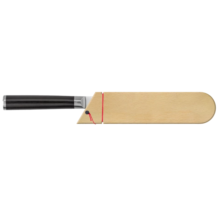 Select medium-sized Shun knives will find their safe and secure new home in our Shun Medium Universal Saya. This beautiful saya, or sheath, is crafted of beech wood and fits the medium-sized Shun knives listed below. A locking pin, tied to a traditional red thread, keeps each knife securely within its sheath. Expect a looser fit for breathability and air circulation in this beautiful, traditional-style protection for your fine Shun knives.