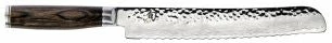 If you bake or buy whole loaves of bread, a bread knife will be one of the most-used knives in your kitchen. Whether you love wonderfully crusty or delicately tender bread, the Shun Premier Bread Knife will be your loaf’s new best friend, no matter what its texture. The key is Shun’s razor-sharp, wide, “low frequency” serrations. Unlike a plain-edged knife, the serrations let you gently saw through the bread without crushing and with much less crumbing. Unlike sawtooth serrations that are spaced closer together, the Shun Premier Bread Knife’s wide serrations will gently glide through the bread without tearing. This keeps the bread’s texture intact and enhances eating pleasure. Cakes and pastries also benefit from the Shun Premier Bread Knife’s smooth cutting capabilities.