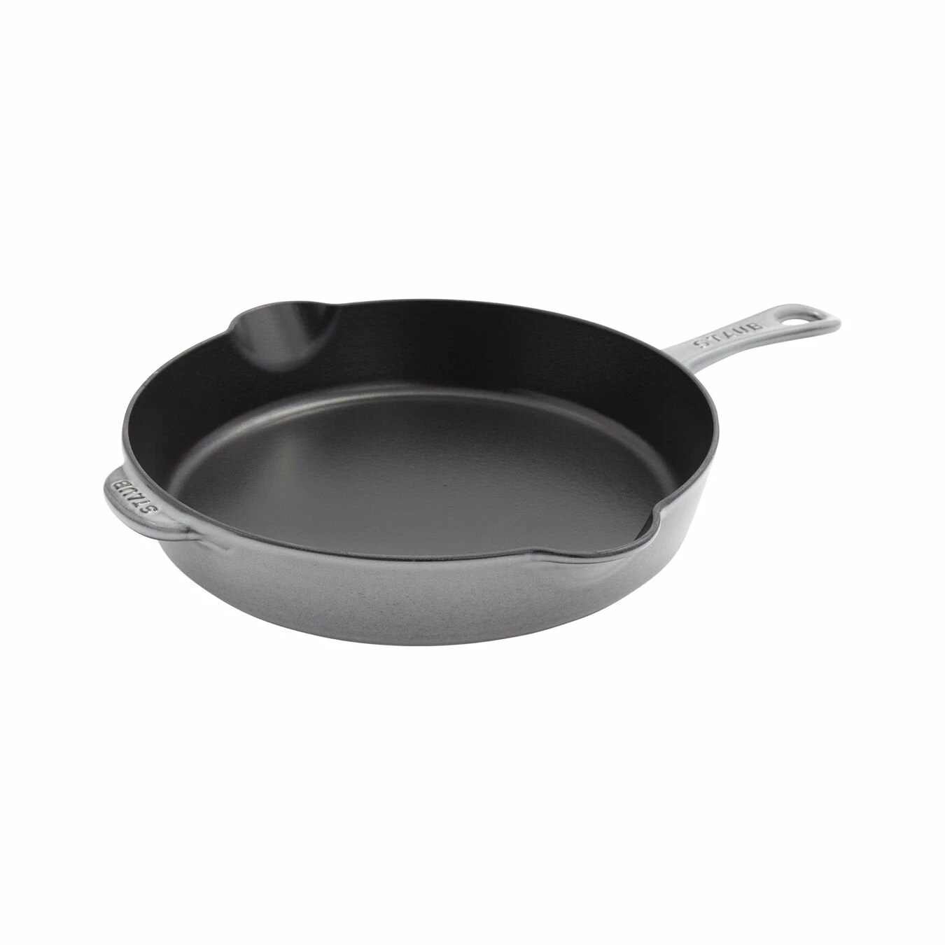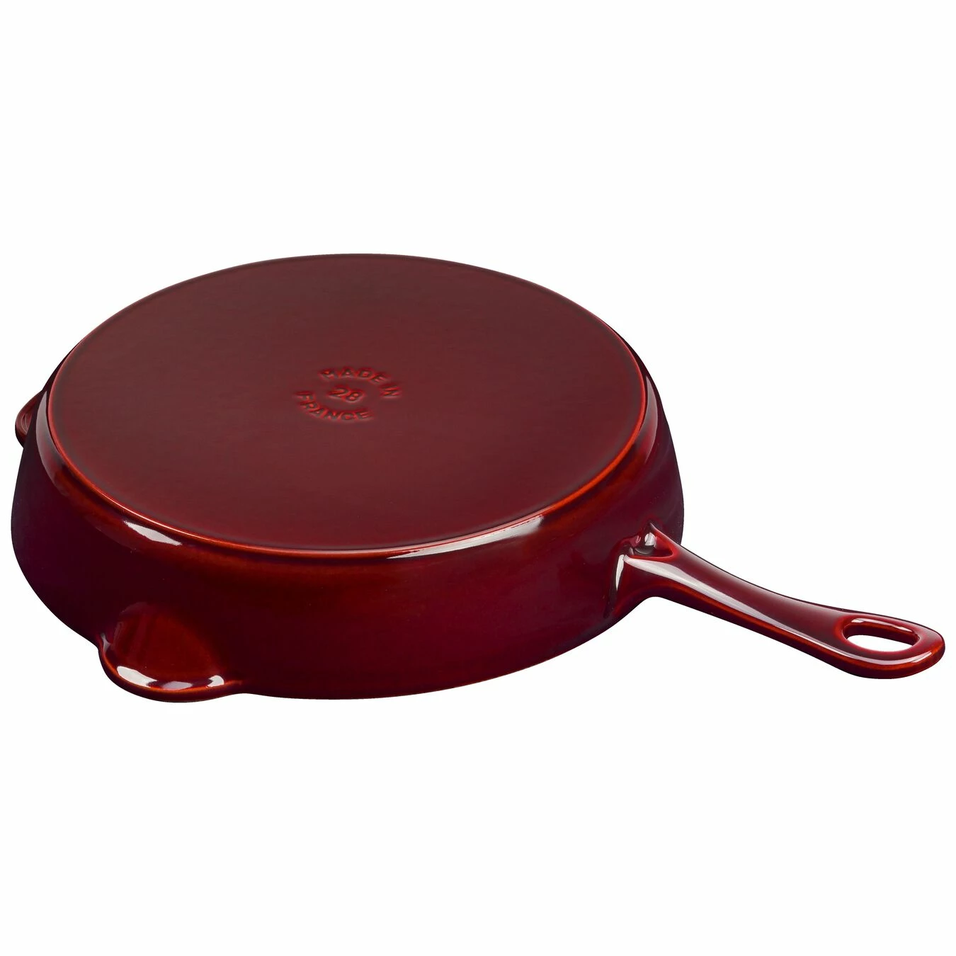 Proudly made in France, Staub has been the benchmark for premium cast iron cookware. Like all Staub fry pans, the Staub Traditional Skillet browns foods beautifully. Whether you’re searing chicken breasts, frying bacon, or caramelizing carrots, the Staub enameled black matte interior imparts texture, promoting exceptional browning and searing, without sticking. And because cast iron offers steady, even heat distribution, the temperature of the pan won’t drop as you cook. Like a sauté pan and fry pan in one, our Traditional Skillet boasts all the features of a fry pan combined with higher, straighter sides, which means less splatter on the stovetop. Staub enameled cast iron cookware is the choice of the world’s best chefs. With exceptional durability, it’s perfect for day-to-day use in both gourmet home kitchens and prestigious restaurants around the world. Each piece transitions beautifully from the kitchen to the table. Built to last a lifetime, these heirloom pieces can be passed from generation to generation.