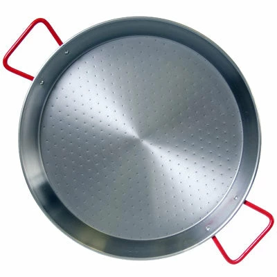 The traditional paella pan of Spain, carbon steel is indispensible for the most authentic flavor.