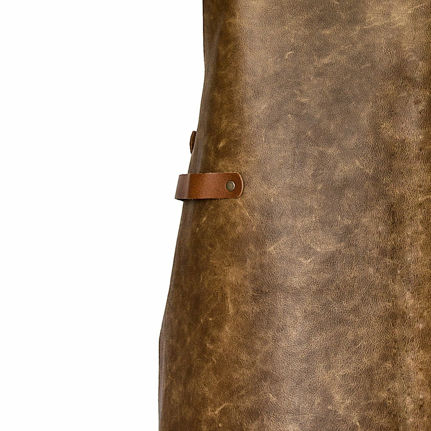 Atlanta is a Vintage Look supple leather. Due to the flexibility of the leather, the apron fits nicely around your body. Atlanta Vintage Look leather aprons are fitted with high quality naturally tanned belts and straps. This type of leather is easy to clean with a damp cloth.