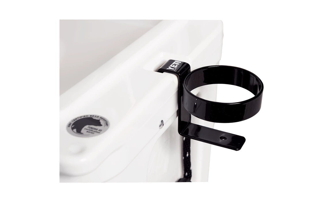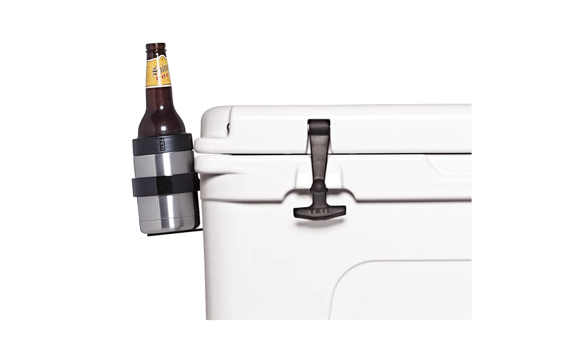 Keep your beverage within reach on the boat, at the campsite, or on the river. The YETI Beverage Holder mounts to the side of your YETI Tundra, Roadie or Tank and serves as a secure and convenient caddy for your frosty beverage. This heavy-duty, powder coated stainless steel holder slides securely into the AnchorPoint Tie-Down slot of your YETI, but doesn’t get in the way of opening your cooler to grab another frosty beverage. Compatible with the Rambler Colster, 20 oz. Rambler Tumbler, 30 oz. Rambler Tumbler, and 18 oz. Rambler Bottle.