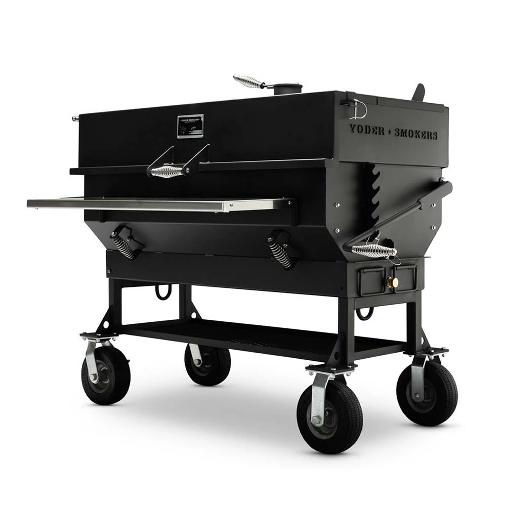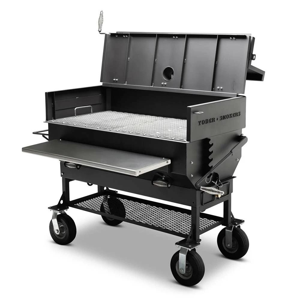 The popularity of cooking over charcoal has steadily increased over the past 10 years, and to meet that demand, Yoder Smokers has introduced large format charcoal grills that cater to the folks cooking for a crowd as well as those in the backyard. This 24×48″ grill boasts 1,152 square inches of cooking surface and heavy-duty American made construction. Key features cooks will immediately appreciate include the variable height charcoal basket, ability to cook indirectly, and the custom stainless steel front shelf. And mounted on casters with 8″ pneumatic tires, this grill makes short work out of positioning on the patio or venue.