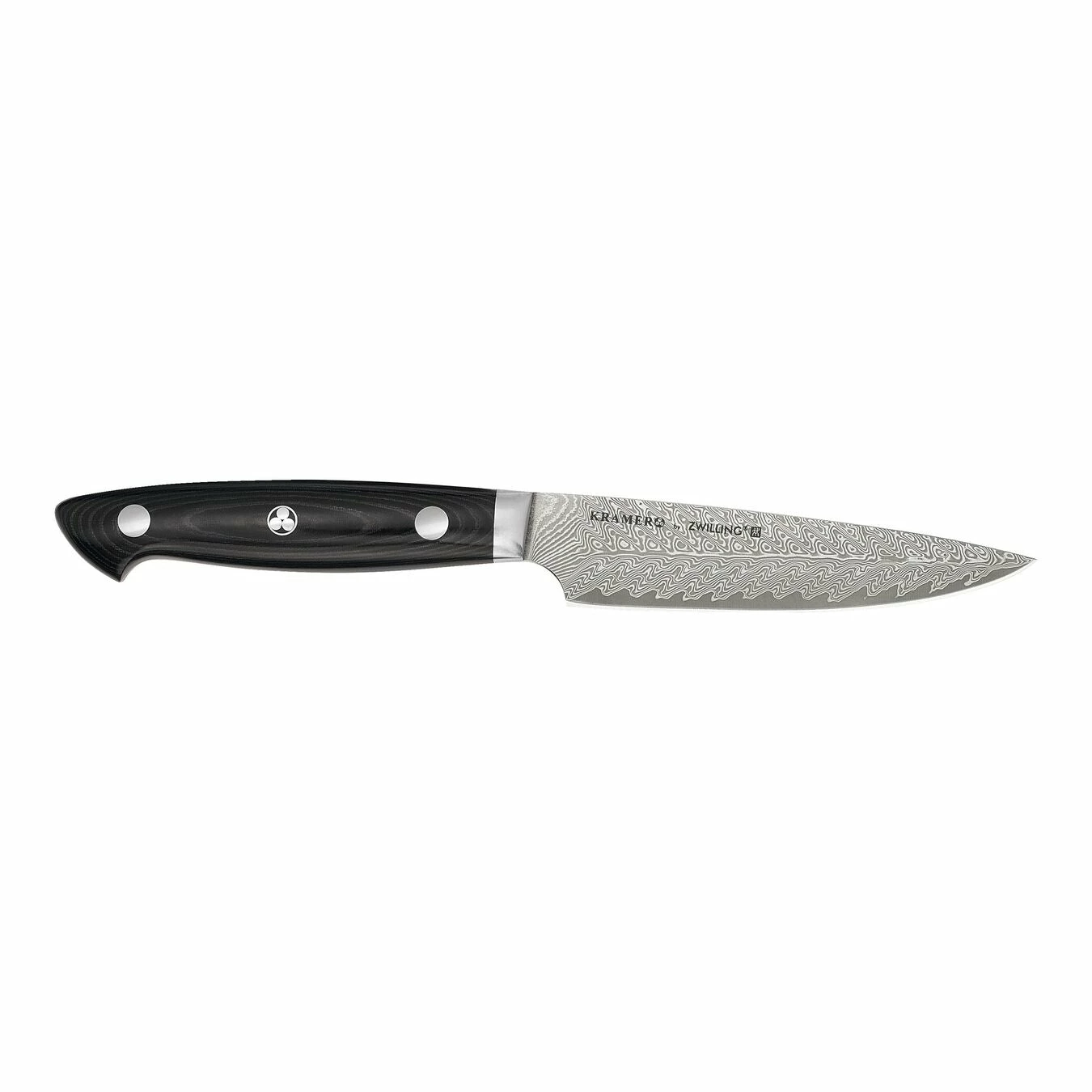 Created with Master Bladesmith Bob Kramer, the KRAMER by ZWILLING EUROLINE Stainless Steel Damascus Collection features stainless steel blades made to his exacting standards, maximizing curves, balance and utility.Bob’s design has an extremely wide blade to maximize knuckle clearance for larger hands and for cutting through large produce and piles of food. Chopped food can easily be transported with this impressive, broad blade.The knives are hand-finished with a traditional 3-step process by skilled Japanese artisans. Combined with the SG2 micro-carbide powder steel, the ice-hardened CRYODUR blades deliver scalpel-like sharpness, stay sharper longer and can withstand more sharpening over their lifespan. The SG2 super steel core is protected by an exceptionally beautiful 100-layer Chevron Damascus pattern, which is complimented by a stunning black linen Micarta handle and signature Bob Kramer mosaic pin.